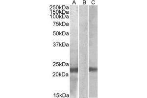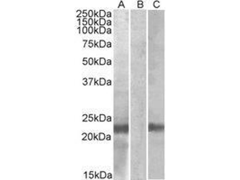 Peptide ELISA: Detection Limit: 1/16000. Western blot: 1-3 μg/mL. In transfected HEK293 transiently expressing Human CST8 (MYCand DYKDDDDK tagged), a band of approx.23 kDa is observed. No bands are observed inmock-transfected HEK293 and the same band is observed using anti-myc tag antibody. Other applications not tested. Optimal dilutions are dependent on conditions and should be determined by the user.