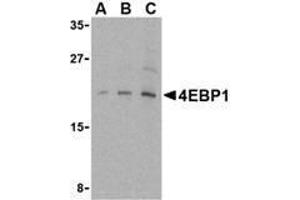 ELISA. Western Blot: 4E-BP1 antibody can be used for the detection of 4E-BP1 at 2.5 - 5 μg/mL. Immunofluorescence. Other applications not tested. Optimal dilutions are dependent on conditions and should be determined by the user.