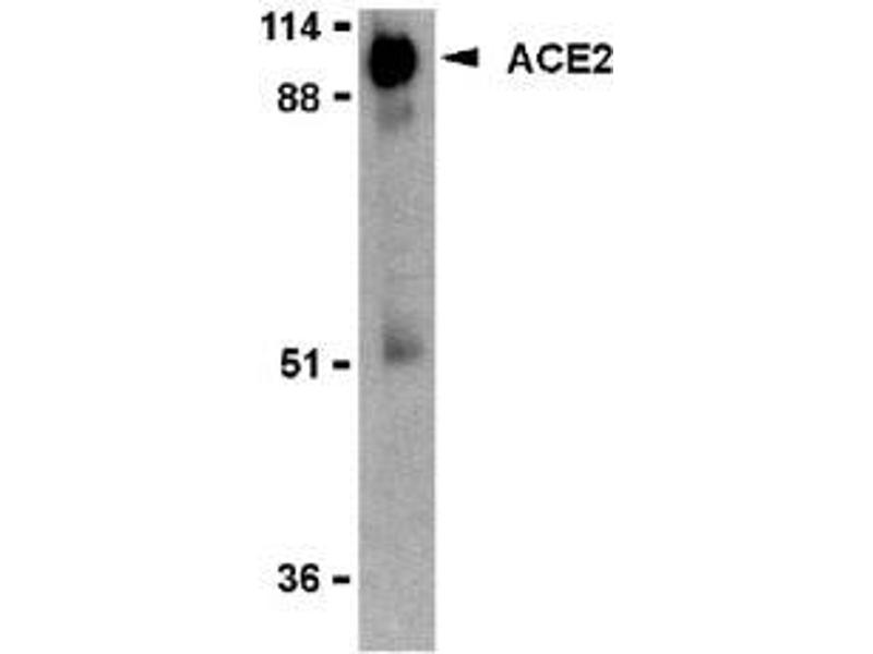 ACE2 antibody was raised against a synthetic peptide corresponding to amino acids near the center of human ACE2. Anti-ACE2 has no cross response to ACE1.