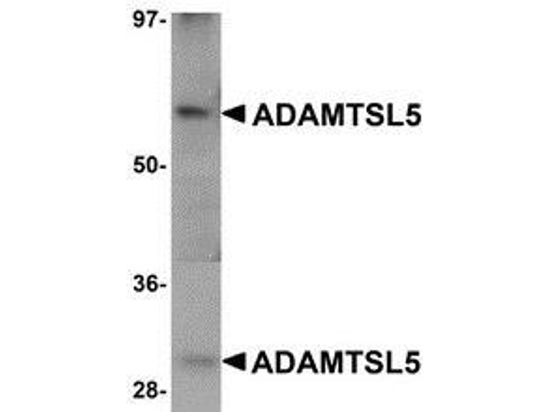 ELISA. Western Blot: ADAMTSL5 antibody can be used for detection of ADAMTSL5 at 1 - 2 μg/mL. Other applications not tested. Optimal dilutions are dependent on conditions and should be determined by the user.