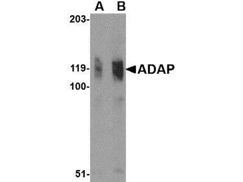 ADAP antibody was raised against a 17 amino acid peptide from near the amino terminus of human ADAP.