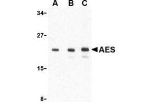 - AES antibody was raised against a 16 amino acid peptide from near the carboxy terminus of human AES.