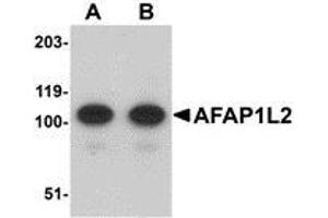 ELISA. Western Blot: AFAP1L2 antibody can be used for detection of AFAP1L2 at 1 - 2 μg/mL. Immunohistochemistry. Other applications not tested. Optimal dilutions are dependent on conditions and should be determined by the user.