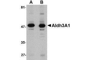 Aldh3A1 is a member of the aldehyde dehydrogenase superfamily, a group of NAD(P)(+)-dependent enzymes that catalyze the oxidation of a wide spectrum of aliphatic and aromatic aldehydes. Aldh3A1 is highly expressed in stomach and even more strongly in cornea, representing between 5 to 50 % of the water soluble protein fraction in mammalian corneas. It is thought that Aldh3A1 acts to protect the cornea from UV-induced oxidative stress by not only detoxification of reactive aldehydes by also through the direct absorbtion of UV energy. However, corneas from Aldh3A1-null mice are indistinguishable from those from wild-type mice, mice lacking both Aldh3A1 and Aldh1A1 showed increased cataract formation following UVB exposure, suggesting that Aldh1A1 may be able to compensate for the loss of Aldh3A1. At least two isoforms of Aldh3A1 are known to exist. This antibody is predicted to have no cross-reactivity to Aldh3A2.Synonyms: ALDH3A1, ALDHIII, Aldehyde dehydrogenase, Aldehyde dehydrogenase 3, Aldehyde dehydrogenase family 3 member A1, dimeric NADP-preferring
