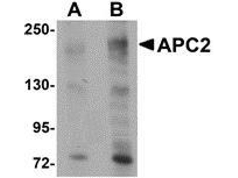 ELISA. Western Blot: APC2 antibody can be used for detection of APC2 at 1 - 2 μg/mL. Other applications not tested. Optimal dilutions are dependent on conditions and should be determined by the user.