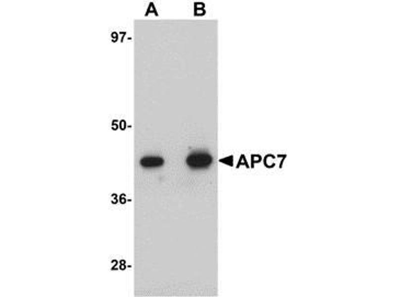 - Cell cycle regulated protein ubiquitination and degradation within subcellular domains is thought to be essential for the normal progression of mitosis. APC7 is a highly conserved component of the anaphase promoting complex/cyclosome (APC/C), a cell cycle-regulated E3 ubiquitin ligase that controls progression through mitosis and the G1 phase of the cell cycle. APC/C is responsible for degrading anaphase inhibitors, mitotic cyclins, and spindle-associated proteins ensuring that events of mitosis take place in proper sequence. The individual APC/C components mRNA and protein levels are expressed at approximately the same levels in most tissues and cell lines, suggesting that they perform their functions as part of a complex. APC7 is required for proper protein ubiquitination function of APC/C and for the interaction of APC/C with various transcription coactivators.Synonyms: Anaphase-promoting complex subunit 7, Cyclosome subunit 7