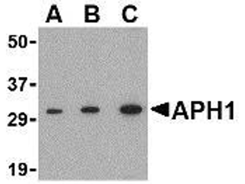 ELISA. Western Blot: APH1 antibody can be used for detection of APH1 at 0.5 - 1 μg/mL. Other applications not tested. Optimal dilutions are dependent on conditions and should be determined by the user.