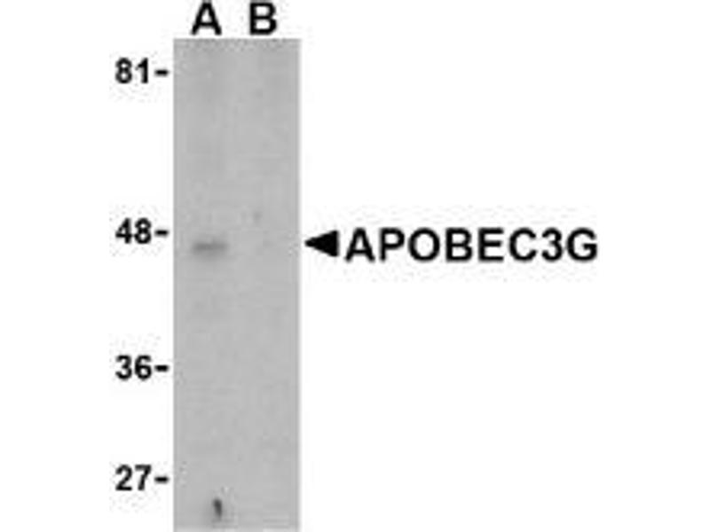 APOBEC3G antibody was raised against a synthetic peptide corresponding to 15 amino acids near the amino-terminus of human APOBEC3G antibody will also detect the APOBEC3F isoform.