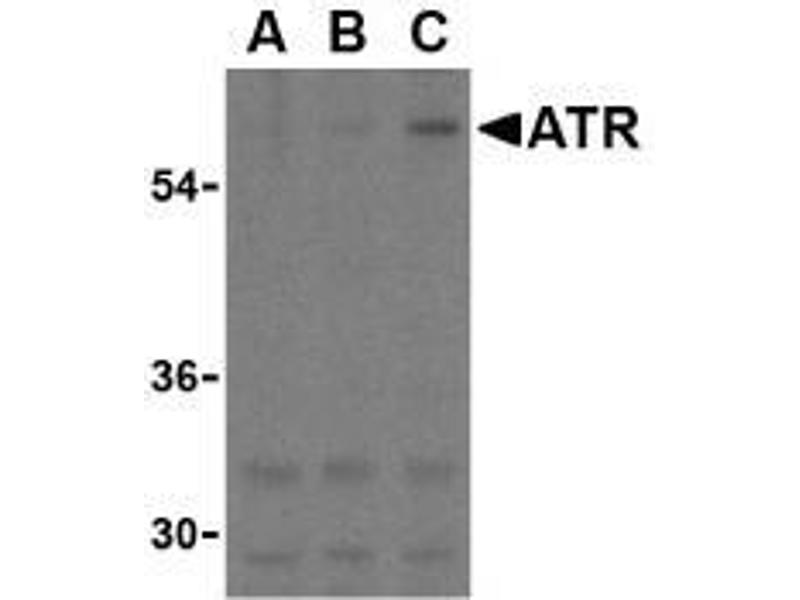 - ATR antibody was raised against a peptide corresponding to 13 amino acids near the C-terminus of human ATR. ATR will recognize only the largest isoform.