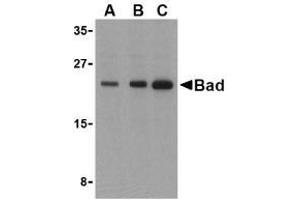 - Bad antibody was raised against a peptide corresponding to 15 amino acids near the C-terminus of human Bad.