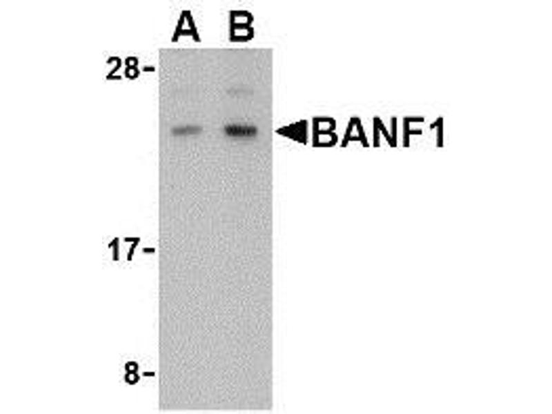 ELISA. Western Blot: BANF1 antibody can be used for detection of BANF1 at 0.5 - 1 μg/mL. Immunofluorescence. Other applications not tested. Optimal dilutions are dependent on conditions and should be determined by the user.