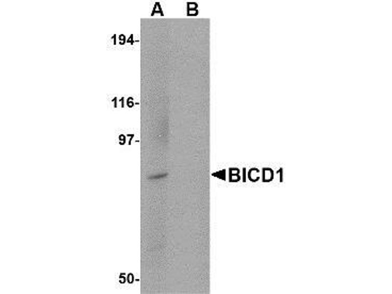 - BICD1 antibody was raised against a 15 amino acid peptide from near the carboxy terminus of human BICD1.