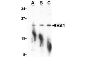 ELISA. Western Blot: Bit1 antibody can be used for the detection of Bit1 at 1 - 2 μg/mL. Immunocytochemistry. Other applications not tested. Optimal dilutions are dependent on conditions and should be determined by the user.