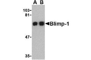 ELISA. Western Blot: Blimp-1 antibody can be used for detection of Blimp-1 at 0.5 - 1 μg/mL. Immunofluorescence. Other applications not tested. Optimal dilutions are dependent on conditions and should be determined by the user.