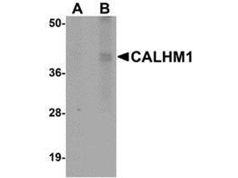 ELISA. Western Blot: CALHM1 antibody can be used for detection of CALHM1 at 1 - 2 μg/mL. Immunohistochemistry. Other applications not tested. Optimal dilutions are dependent on conditions and should be determined by the user.