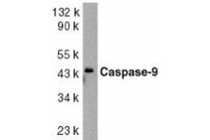 ELISA. Western Blot: Caspase-9 antibody can be used for detection of caspase-9 at 1/1000 to1/2000 dilution. A 46 kDa band should be detected. Other applications not tested. Optimal dilutions are dependent on conditions and should be determined by the user.