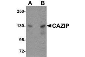- CAZIP antibody was raised against an 18 amino acid peptide near the carboxy terminus of human CAZIP.