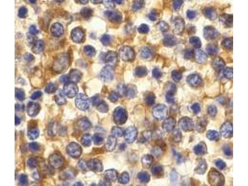 Human immunodeficiency virus (HIV) and related virus require coreceptors to infect target cells. Some G protein-coupled receptors including CCR5, CXCR4, CCR3, CCR2b, CCR8, GPR15, STRL33, and CX3CR1 in the chemokine receptor family were recently identified as HIV coreceptors. CCR5, CXCR4 and CCR3 are the principal receptors for HIV fusion and entry of target cells. CCR3 facilitates infection by a subset of virus. CCR3 and CCR5 promote efficient infection of microglia, the major target cells in the CNS (3,4). High levels of CCR3 and CXCR4 expression were found on the neurons from both the central and peripheral nervous systems. The CCR3 ligand, eotaxin, and an anti-CCR3 antibody inhibited HIV infection of microglia. These results indicate CCR3 plays an important role in HIV infection of CNS.Synonyms: C-C CKR-3, C-C chemokine receptor type 3, CC-CKR-3, CCR-3, CKR3, CMKBR3, Eosinophil eotaxin receptor