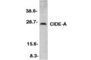 ELISA. Western Blot: CIDE-A antibody can be used for detection of CIDE-A at 1/500 to 1/1000dilution. An approximately 25 kDa band can be detected. Immunohistochemistry. Other applications not tested. Optimal dilutions are dependent on conditions and should be determined by the user.