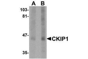 ELISA. Western Blot: CKIP1 antibody can be used for detection of CKIP1 at 1 - 2 μg/mL. Other applications not tested. Optimal dilutions are dependent on conditions and should be determined by the user.