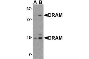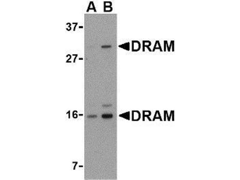 Damage-regulated autophagy modulator (DRAM) is a p53 target gene encoding a lysosomal protein that induces autophagy, a process that degrades cytosolic proteins and organelles. It has been suggested that activation of DRAM by p53 is simultaneous to the activation by p53 of one or more proapoptotic genes such as PUMA, Bax, etc., and that the signaling pathways regulated by these genes promote a full cell death response. By itself, DRAM cannot induce apoptosis, but the fact that it is inactivated in certain cancers highlights the importance of DRAM and suggests that autophagy may play a more important role in cancer than initially suspected. At least two different isoforms of DRAM are known to exist.Synonyms: DNA damage regulated autophagy modulator protein 1, DRAM, DRAM-1, FLJ11259