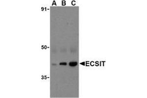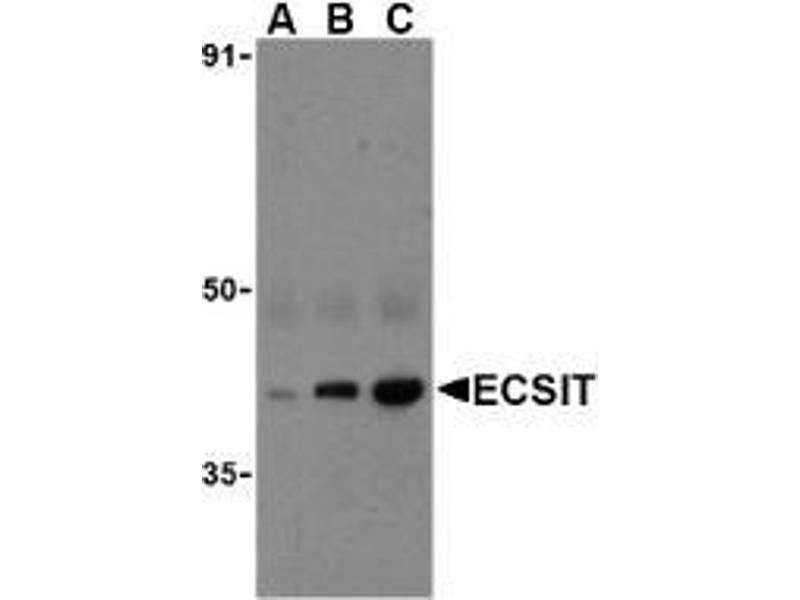 - ECSIT antibody was raised against a peptide corresponding to 14 amino acids near the C-terminus of human ECSIT.