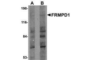 The FERM and PDZ domain containing (FRMPD) protein family consists of four proteins that contain a FERM (Four-point-one, erzin, radixin, moesin) domain and at least one PDZ (PSD-95/Discs large/Zonula-occuldens-1) domain. FRMPD1 was initially identified through a yeast two-hybrid screening with Activator of G-protein signaling 3 (AGS3), a protein that acts to stabilize the GDP-bound conformation of Gai, as the bait. FRMPD1 binds to the tetratricopeptide repeat of AGS3 and stabilizes AGS3 in a membrane environment. Suppression of FRMPD1 in Cath.a-differentiated neuronal cells decreased the level of endogenous AGS3 in membrane fractions by ~50 % and enhanced the inhibition of forskolin-induced increases in cAMP. Co-immunoprecipitation studies indicate that the interaction of AGS3 with FRMPD1 is mutually exclusive with the interaction of AGS3 with Gai3, suggesting that FRMPD1 may position AGS3 in the membrane where it can then interact with Galphai.Synonyms: FERM and PDZ domain-containing protein 1, FERM domain-containing protein 2, FRMD2, KIAA0967