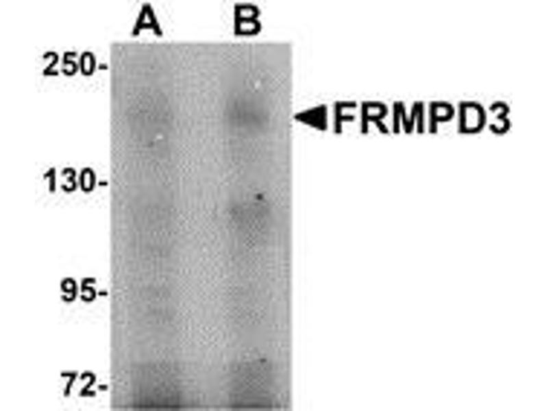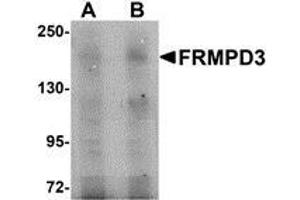 The FERM and PDZ domain containing (FRMPD) protein family consists of four proteins that contain a FERM (Four-point-one, erzin, radixin, moesin) domain and at least one PDZ (PSD-95/Discs large/Zonula-occuldens-1) domain. Unlike other members of the FRMPD family, FRMPD3 has no known function. It is most similar to FRMPD4, which is highly expressed in multiple regions of the brain and enriched in the postsynaptic density (PSD) fractions, it is possible that FRMPD3 also interacts with other PDZ domain-containing proteins in neural cells.Synonyms: FERM and PDZ domain-containing protein 3, KIAA1817