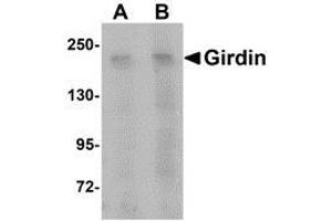 Girdin is a Galpha-interacting protein that can enhance the activation of the protein kinase Akt, remodel the actin cytoskeleton, and is thought to be involved in the regulation of cell migration and cancer metastasis. It has recently been shown that Girdin interacts with Disrupted-in-Schizophrenia 1 (DISC1), a susceptibility gene for major psychiatric disorders. DISC1 is thought to be involved in the migration, positioning and differentiation of dentate granule cells (DGCs) during development, depletion of Girdin or blocking the Girdin-DISC1 interaction results in defects in axonal sprouting in the CA3 region of the hippocampus and overextended migration of mispositioning of DGCs, suggesting the Girdin plays a role in postnatal neurogenesis in the dentate gyrus.Synonyms: APE, Akt phosphorylation enhancer, CCDC88A, Coiled-coil domain-containing protein 88A, G alpha-interacting vesicle-associated protein, GIV, GRDN, Girders of actin filament, HkRP1, Hook-related protein 1, KIAA1212