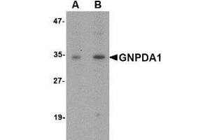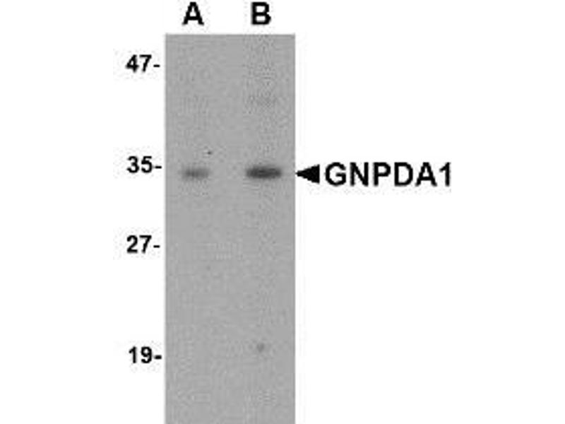 - GNPDA1 antibody was raised against an 18 amino acid peptide near the carboxy terminus of human GNPDA1.