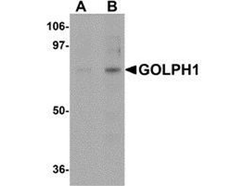 GOLPH1 antibody was raised against a 16 amino acid peptide from near the amino terminus of human GOLPH1.