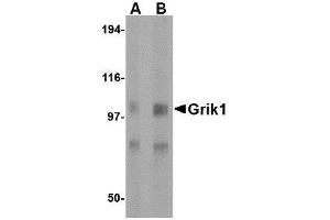 Glutamate receptors are the predominant excitatory neurotransmitter receptors in the mammalian brain and are activated in a variety of normal neurophysiologic processes. Grik1, also known as glutamate receptor 5, belongs to the kainate family of glutamate receptors, which are composed of four subunits and function as ligand-activated ion channels. Grik1 is expressed in GABAergic interneurons of the hippocampus and are thought to participate in the formation of various subtypes of kainate receptors with Grik2 and KA2. Stimulation of Grik1 leads to intracellular calcium release and activation of protein kinase C. Excessive activation has been associated with psychiatric, neurological and neurodegenerative diseases. Numerous isoforms of Grik1 are known to exist and may be subject to RNA editing within the second transmembrane domain, which is thought to alter the properties of ion flow.Synonyms: EAA3, Excitatory amino acid receptor 3, GRIK1, Glutamate receptor ionotropic kainate 1