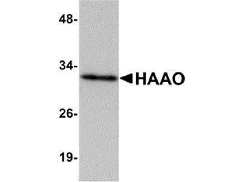 Der Kaninchen Polyklonal anti-HAAO Antikörper wird verwendet zum Nachweis von HAAO in Proben von Human, Maus und Ratte. Er wurde validiert für WB, IHC (p) und EIA.