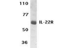 A novel cytokine, designated IL-TIF for IL-10 related T cell-derived inducible factor and IL-22, was recently identified (1-3). The receptor for IL-22 (IL-22R, also termed CRF2-9 and IL-TIF-R1 chain) is a new member of the class II cytokine receptor family (3,4). IL-22R forms a complex with IL-10 receptor b chain and mediates IL-22 signaling. IL-22 and its receptor activate JAK-STAT signaling pathway. IL22R is expressed in normal liver and kidney and their cell lines HepG2 and TK-10. A soluble form of IL-22 receptor, also termed IL-22 binding protein (IL-22BP) and IL-22 receptor-a 2 (IL-22RA2), was identified very recently (5-7). IL-22BP prevents binding of IL-22 to the functional cell surface IL-22R complex and neutralizes IL-22 activity. LPS induces IL-22 expression, which indicates the role of IL-22 in inflammatory response.Synonyms: CRF2-9, Cytokine receptor class-II member 9, Cytokine receptor family 2 member 9, IL-22 receptor subunit alpha-1, IL-22R-alpha-1, IL-22RA1, Interleukin-22 receptor subunit alpha-1, ZcytoR11