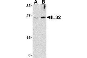ELISA. Western Blot: 2.5 - 5 μg/mL. This antibody detects the largest isoform of IL-32. Other applications not tested. Optimal dilutions are dependent on conditions and should be determined by the user.