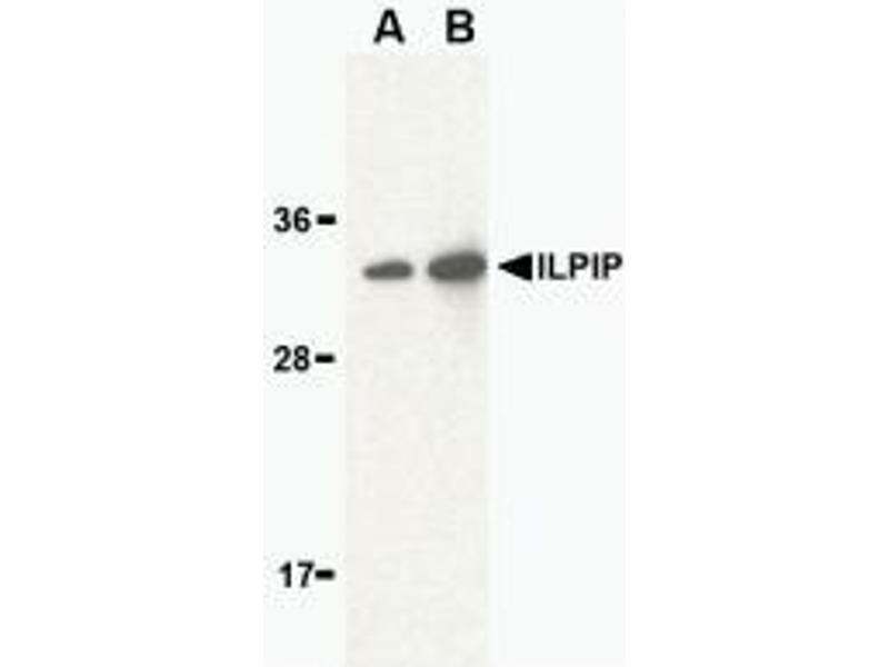 ILPIP antibody was raised against a synthetic peptide corresponding to amino acids near the center of human ILPIP.