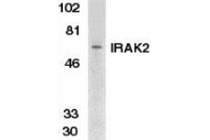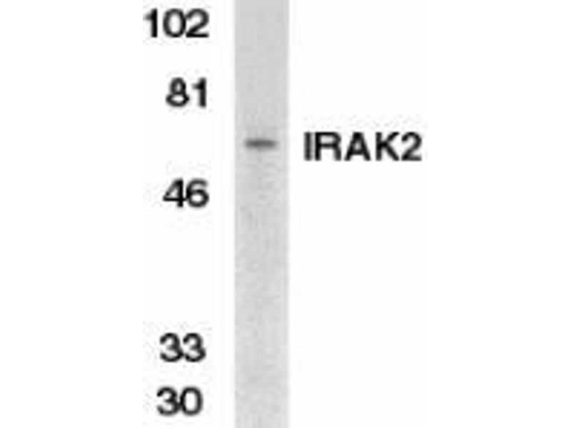 ELISA. Western Blot: 17500 to 1/1000. A 65 kDa band can be detected. Anti-IRAK2 has no crossresponse to IRAK. Immunofluorescence. Other applications not tested. Optimal dilutions are dependent on conditions and should be determined by the user.