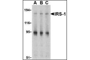 Following tyrosine phosphorylation, the insulin receptor substrate 1 and 2 (IRS-1 and IRS-2) can form a protein scaffolding for the assembly of a host of Src homology 2 (SH2) domain-containing proteins (1). IRS-1 tyrosine phosphorylation can occur through the activity of several cytokine and growth factor receptors such as interleukin (IL)-4, IL-9, interferon-?, in addition to the insulin and insulin-like growth factor 1 receptors (2). The scaffolding provided by IRS-1 and IRS-2 is necessary for insulin signal transduction across the cell membrane. IRS-1 tyrosine phosphorylation, and thus formation of the IRS scaffolding is inhibited by tumor necrosis factor (TNF), and this inhibition can itself be blocked by rapamycin, an inhibitor of the mammalian target of rapamycin (TOR) (3,4). TNF activity could also be blocked by inhibition of the Akt kinase and the PTEN tumor suppressor, suggesting that TNF impairs insulin signaling through IRS-1 by activation of the TOR signaling pathway (3).Synonyms: IRS-1, Insulin receptor substrate 1