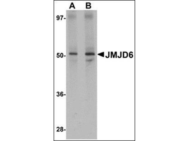 - JMJD6 antibody was raised against a 15 amino acid peptide from near the amino terminus of human JMJD6.