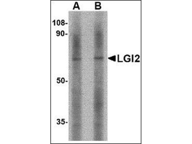 LGI2 antibody was raised against a 10 amino acid peptide from near the center of human LGI2.