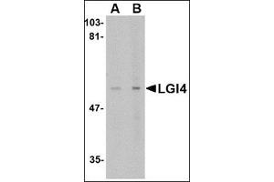 The leucine-rich, glioma inactivated gene 4 (LGI4) is a member of the LGI family in which LGI1 is the exemplar. The LGI family consists of four of highly related proteins containing leucine-rich repeats (LRRs) which are highly similar to other transmembrane signaling molecules and receptors. LGI1 has been identified as a candidate tumor suppressor gene for glioma and plays a role in autodominant lateral temporal epilepsy (ADTLE), an epileptic syndrome characterized by focal seizures with predominant auditory symptoms. Despite its high homology with LGI1 and similar pattern of expression, mutations in LGI4 have not been found to be associated with ADTLE. However, the LGI4 gene is located in a region linked to benign familial infantile convulsions. Further study revealed that a GC-to-AT polymorphism was correlated with childhood absence epilepsy. Other studies showed that decreasing LGI4 expression in cultured cells inhibits myelination, indicating that LGI4 may play a role in neural development. Two isoforms of LGI4 are known to exist.Synonyms: LGI1-like protein 3, LGI4, LGIL3, Leucine-rich glioma-inactivated protein 4, Leucine-rich repeat LGI family member 4