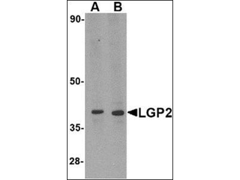 Anti-viral innate immune responses are triggered by pathogen-associated molecular patters (such as the accumulation of intracellular nucleic acids resulting from virus infections) and represent the first line of defense against numerous infectious organisms. The Toll-like receptors (TLR) 3, 7, 8, and 9 are expressed in immune cells and function as transmembrane pattern recognition receptors to detect foreign nucleic acids. Other proteins that play similar roles, such as RIG-1 and MDA5 are members of a CARD-helicase family and are expressed in the cytoplasm. A third protein, LGP2, is similar to RIG-1 and MDA5, except for lacking a homologous CARD domain. It is thought to act as an element of negative-feedback regulation of intracellular antiviral signaling. At least four isoforms of LGP2 are known to exist.Synonyms: ATP-dependent RNA helicase DHX58, ATP-dependent helicase LGP2, D11LGP2E, DHX58, LGP2, Protein D11Lgp2 homolog