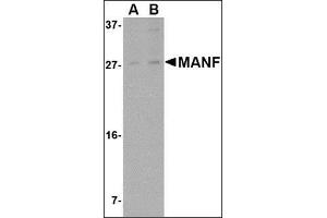 MANF, also known as ARMET, was initially identified as a protein containing an arginine-rich region that was highly mutated in a variety of tumors. More recently it was identified as a mesencephalic astrocyte-derived neurotrophic factor with selectivity for dopaminergic neurons, similar to glial cell line-derived neurotrophic factor (GDNF) and CDNF. In rat brain slices, MANF enhanced nigral gamma-aminobutyric acid release. Like GDNF and CDNF, MANF has selective neuroprotective activity for dopaminergic neurons suggesting that it may be indicated for the treatment of Parkinson's disease. Expression of MANF has also been shown to be induced during ER stress, suggesting that it may play a role in protein quality control during ER stress.Synonyms: Arginine-rich protein, MANF, Mesencephalic astrocyte-derived neurotrophic factor