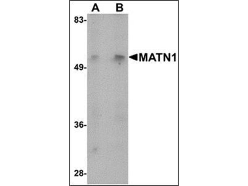 Matrilins (MATNs) are a family of non-collagenous extra-cellular matrix (ECM) proteins consisting of four known members that have been proposed to play key roles in modulating cellular phenotypes during chondrogenesis of mesenchymal stem cells (MSCs). MATN1 and MATN3 are expressed specifically in cartilage and are among the most up-regulated ECM proteins during chondrogenesis. MATN1 is composed of two Willebrand Factor A (vWFA) domains separated by one EGF-like domain, whereas MATN3 is composed of a single N-terminal vWFA domain followed by four epidermal growth factor (EGF) repeats and a coiled-coil domain. MATN1 or MATN3 may play a role in modulating chondrogenesis during the chondrocyte differentiation process. Mutations of this gene have been associated with variety of inherited chondrodysplasias. Recent studies show that the MATN1 promoter region was associated with both susceptibility and disease progression in Adolescent idiopathic scoliosis.Synonyms: CMP, CRTM, Cartilage matrix protein, MATN1