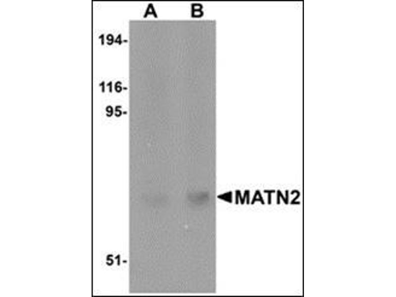 - MATN2 antibody was raised against a 15 amino acid peptide from near the carboxy terminus of human MATN2.