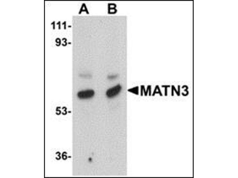 - MATN3 antibody was raised against a 13 amino acid peptide from near the center of human MATN3.