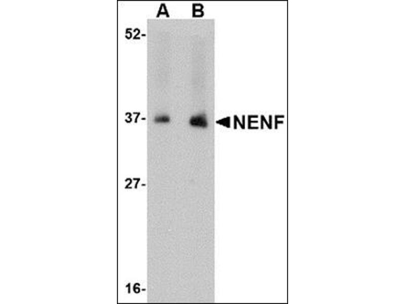 - NENF antibody was raised against a 15 amino acid peptide from near the carboxy terminus of human NENF.