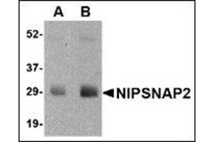 - NIPSNAP2 antibody was raised against a 14 amino acid peptide near the amino terminus of human NIPSNAP2.