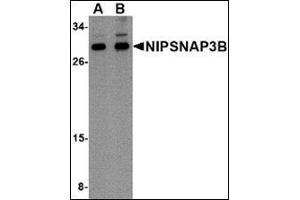 The NIPSNAP proteins comprise a family of evolutionarily well-conserved proteins with strong sequence similarity to the central portion of a protein encoded by C. elegans chromosome III between a 4-nitrophenylphosphatase (NIP) domain and non-neuronal SNAP25-like protein. NIPSNAP2, a novel gene encoding a protein with tyrosine phosphorylation sites and a transmembrane domain, is co-amplified with EGFR in approximately 40 % of glioblastomas, the most common and malignant form of central nervous system tumors. While NIPSNAP3B is highly expressed skeletal muscle, NIPSNAP3A mRNA levels are low. NIPSNAP proteins have been suggested to be important in vesicular transport.Synonyms: Protein NipSnap homolog 3B