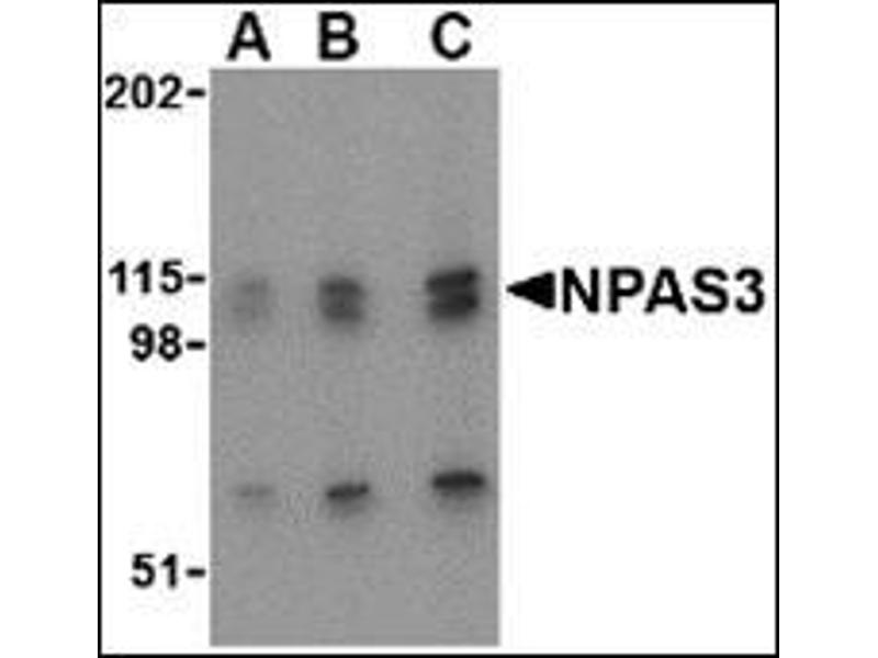 - NPAS3 antibody was raised against a 28 amino acid peptide from near the amino terminus of human NPAS3.